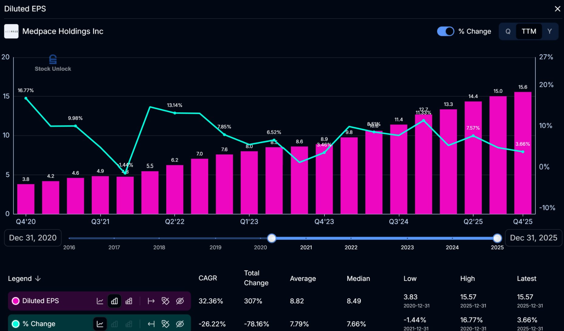 The backlog currently sits around $3B, roughly a quarter the size of Medpace’s entire market cap of ~$12B.