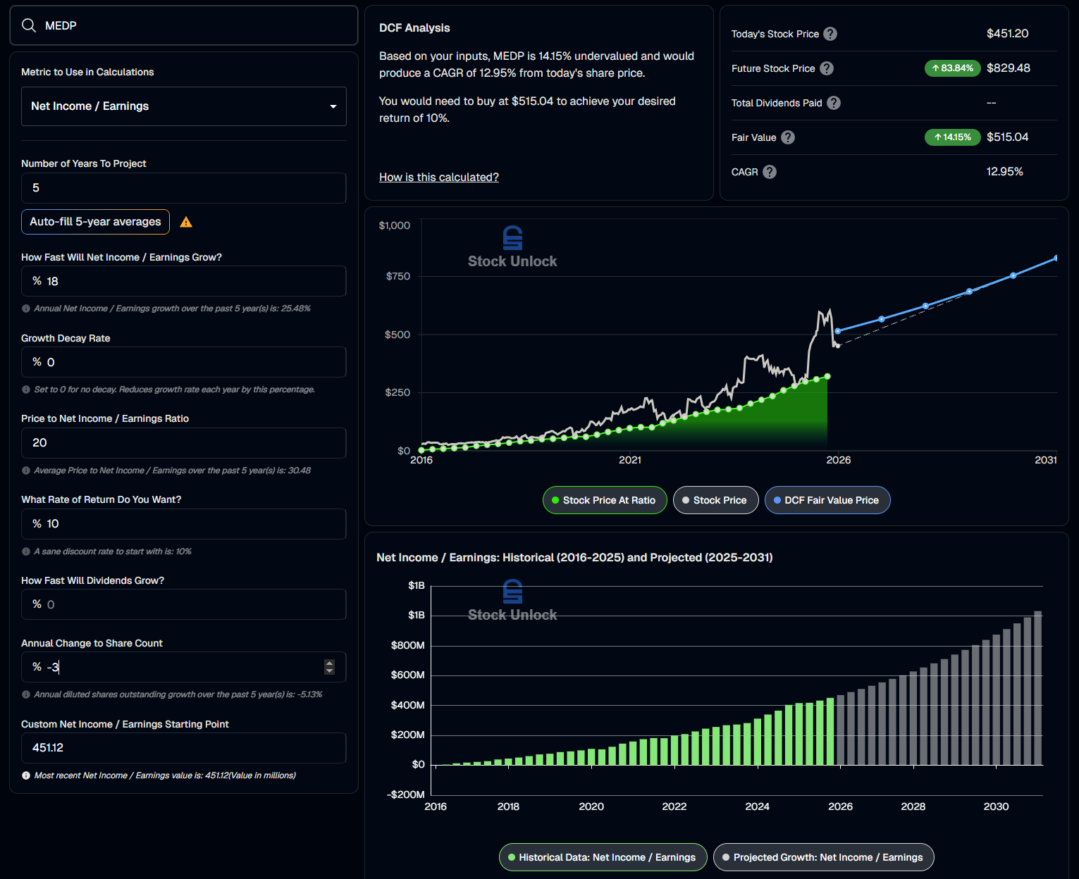 Understanding with accuracy the sheer impact of an environment like this on Medpace’s future backlog would be challenging, to say the least. However, we can frame the idea of a possible investment in MEDP as having the base case scenario initially shown above, with the new incoming AI in silico landscape potentially acting as a massive call option for the position. If the investment lands anywhere along this spectrum, it should work out extremely well.